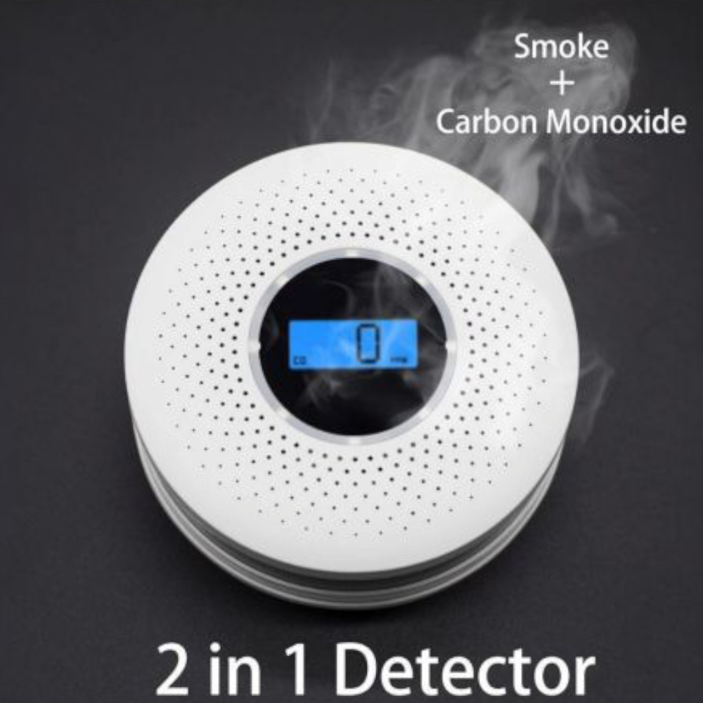 Detector de fum si monoxid de carbon, afisaj LCD, alarma luminoasa sonora, pentru casa, garaj, birou