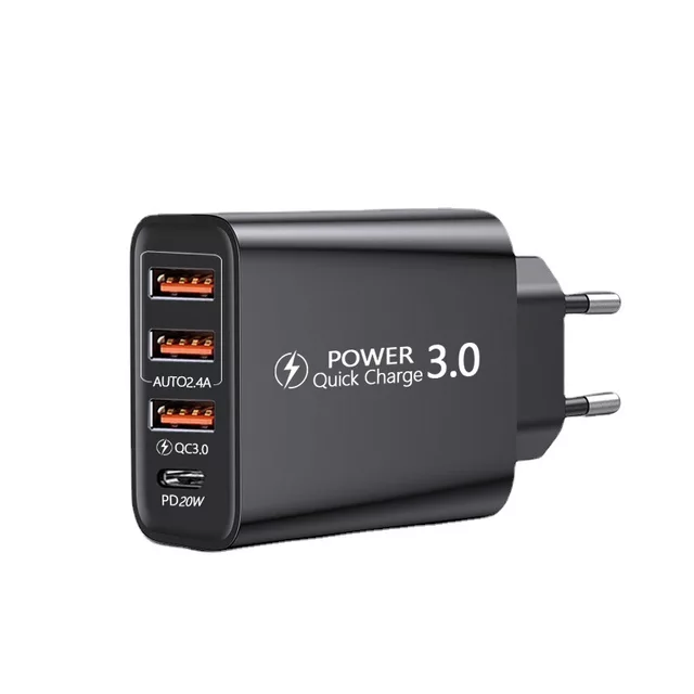 Incarcator travel de perete Quick Charge cu 4 porturi, 3 x USB/ 1 x USB-C 20 W