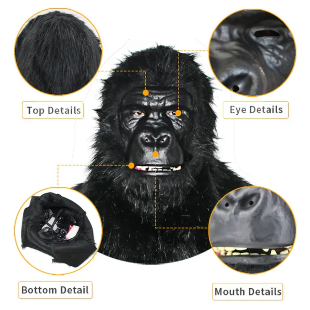Arata foarte realist, ca o adevarata masca de gorila. De asemenea, poate misca gura, vezi prin gaurile ochilor. Nu ti-ar afecta prea mult vederea. Daca nu poti vedea clar prin ochi, poti taia forme mai mari ale ochilor