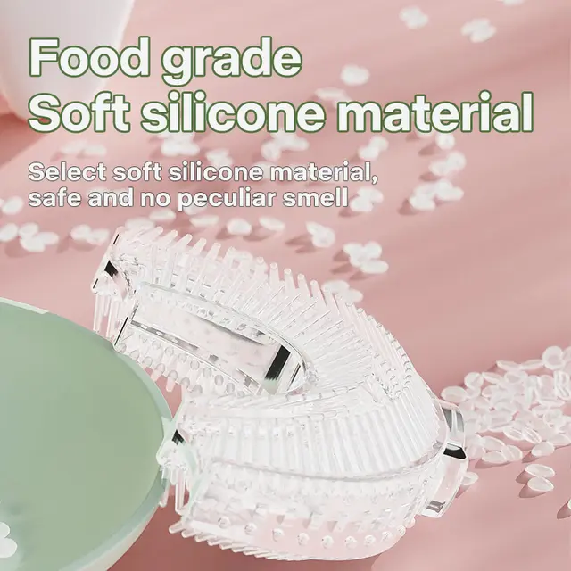 Proiectata cu o forma de U si peri moi, periuta de dinti entru copii mici nu va va rani dintii in timpul periajului. Folosind aceasta periuta de dinti din silicon echipata cu un suport de depozitare minunat care este rezistent la uzura, rezistent la caldura, rezistent la praf si antiaderent, puteti proteja cu usurinta periutele de praf. Suportul poate fi montat pe perete. Fabricata din material siliconic, este sigur si ecologic. Dimensiuni 10*4*2 cm/ greutate -30g.