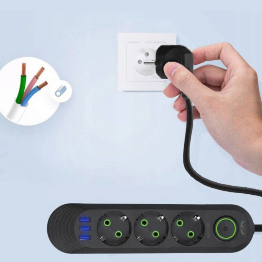 Protectorul de supratensiune ELMHURST este conceput pentru a furniza energie si pentru a va proteja gadgeturile de: scurtcircuite, zgomot de impuls si supratensiuni. Filtrul este echipat cu 3 porturi USB si 3 prize, astfel incat exista suficient spatiu pentru toata lumea.