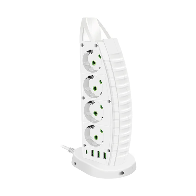 Acest prelungitor, care dispune de 8 prize si 4 porturi USB, este solutia ideala pentru incarcarea rapida si simultana a mai multor dispozitive, design-ul sau unic, in forma de turn, facandu-l sa fie mult mai usor de folosit.