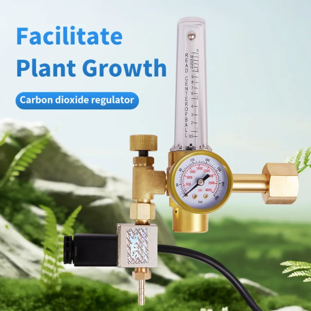 – Tot ce ai nevoie: Doua masini de spalat rezervoare din plastic, tubulatura de distribuire a CO2 de 15 pi, manometru de inalta calitate, fara ulei, supapa solenoidala pentru sarcini grele (120 V), debitmetru (0,5 – 15 SCF/ora), instructiuni detaliate cu diagrama care arata cum cum sa-ti calculezi concentratia de CO2 in camera ta cu un temporizator simplu.