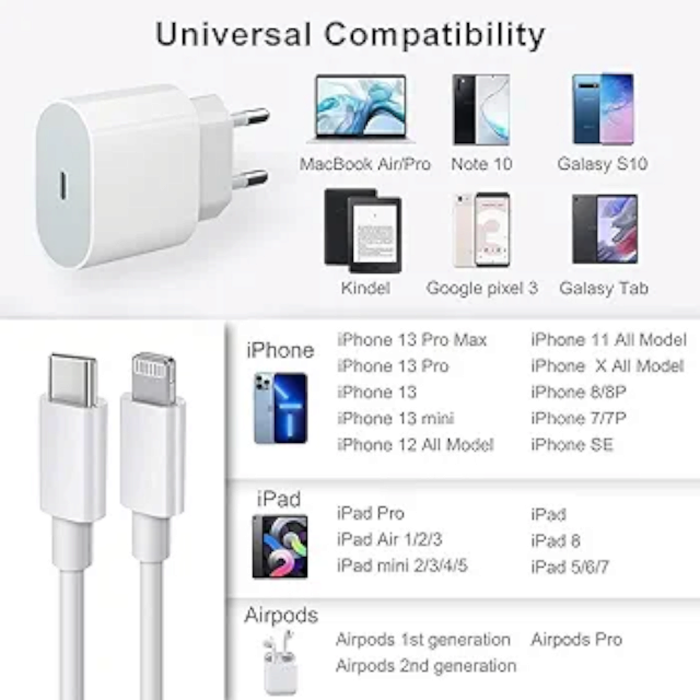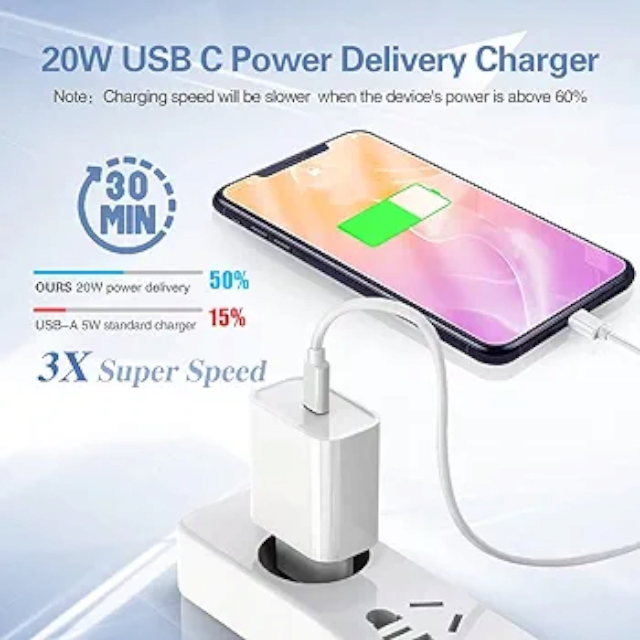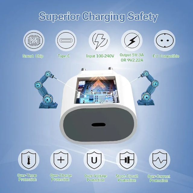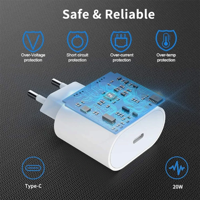 Incarcator USB C de 20 W. Cipul inteligent integrat va poate proteja dispozitivul de supratensiune, scurtcircuit si supraincalzire si poate proteja durata de viata a bateriei dispozitivului.