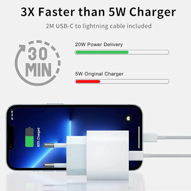 Putere de iesire de pana la 20 W pentru a incarca dispozitivul iPhone de la 0% la 50% in 30 de minute. Este de pana la trei ori mai rapid decat un incarcator original de 5W.