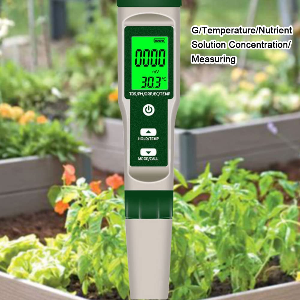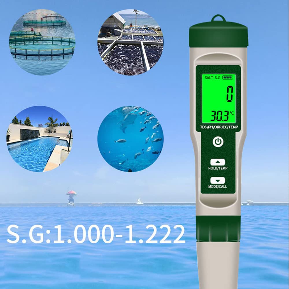 *2. Functia 10-in-1: Tester digital de apa pentru masurarea pH-ului, TDS, sare, SG, ORP, CE, hidrogen, rezistivitate, temperatura si nutrienti.